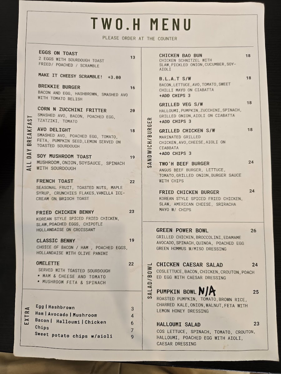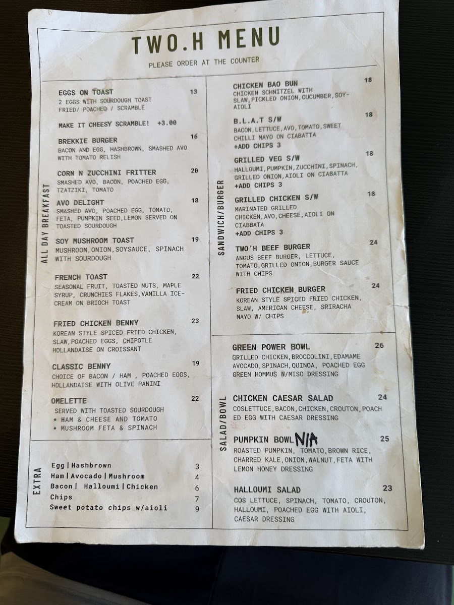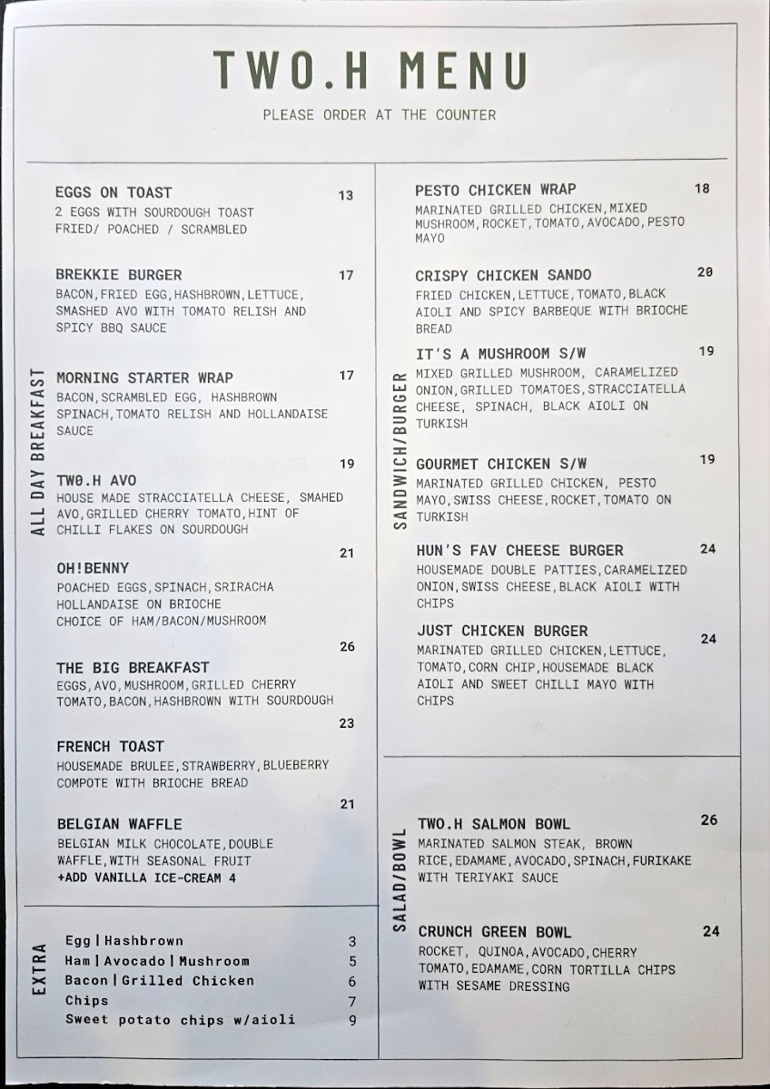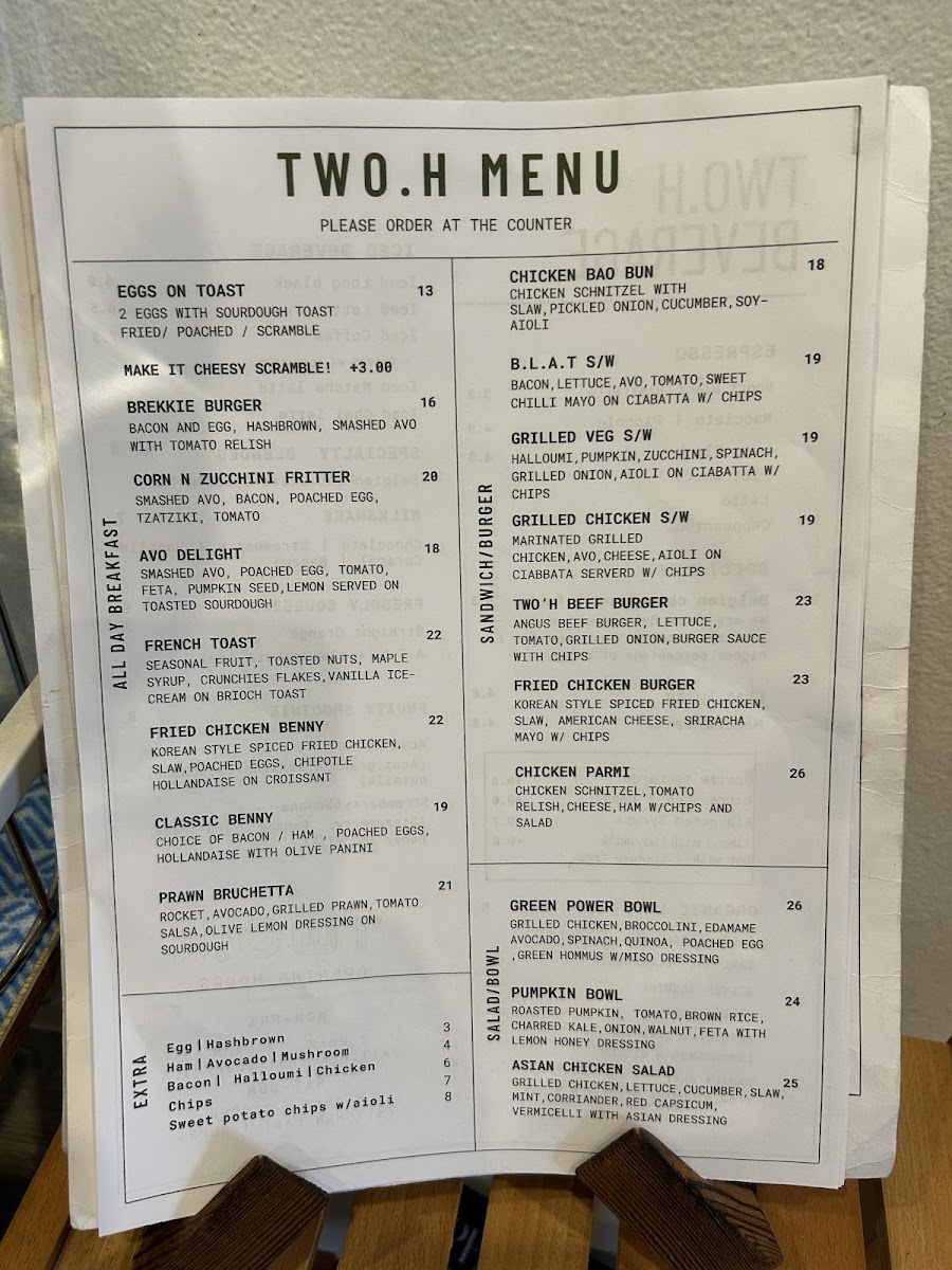 TWO.H cafe Menu